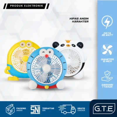 kipas karakter dengan desai yang menarik dan kecepatan putaran yang kencang, lebih sejuk ketika digunakan. Kipas Angin ini sangat cocok diletakkan di meja belajar, kamar tidur, ruang tamu sehingga memberikan kenyamanan yang lebih karena lebih praktis dan hemat tempat.