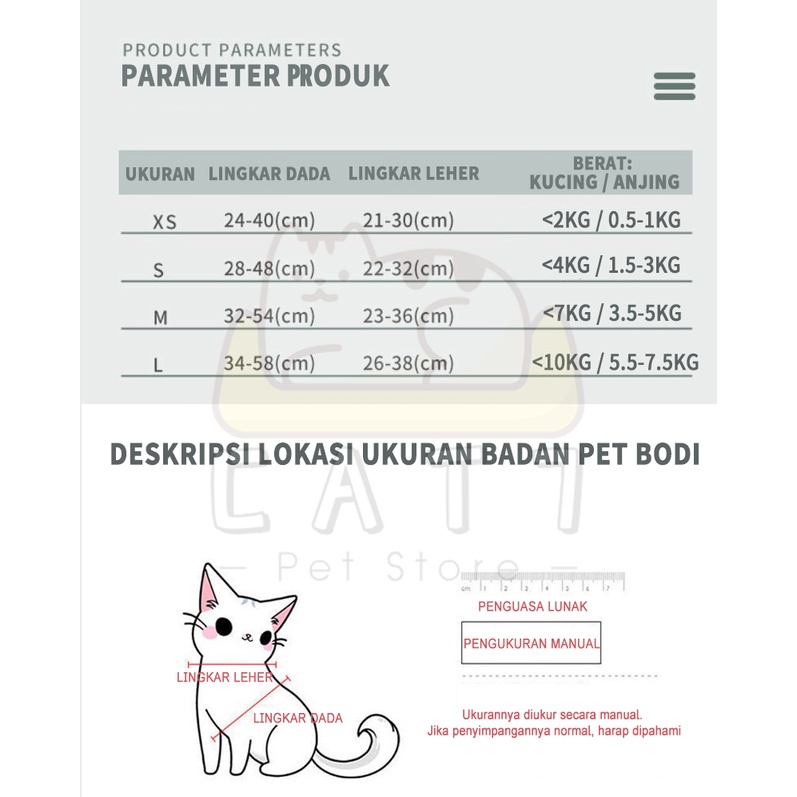 XS: lingkar dada 24-40cm; Lingkar leher 21-30cm;【1-2kg】