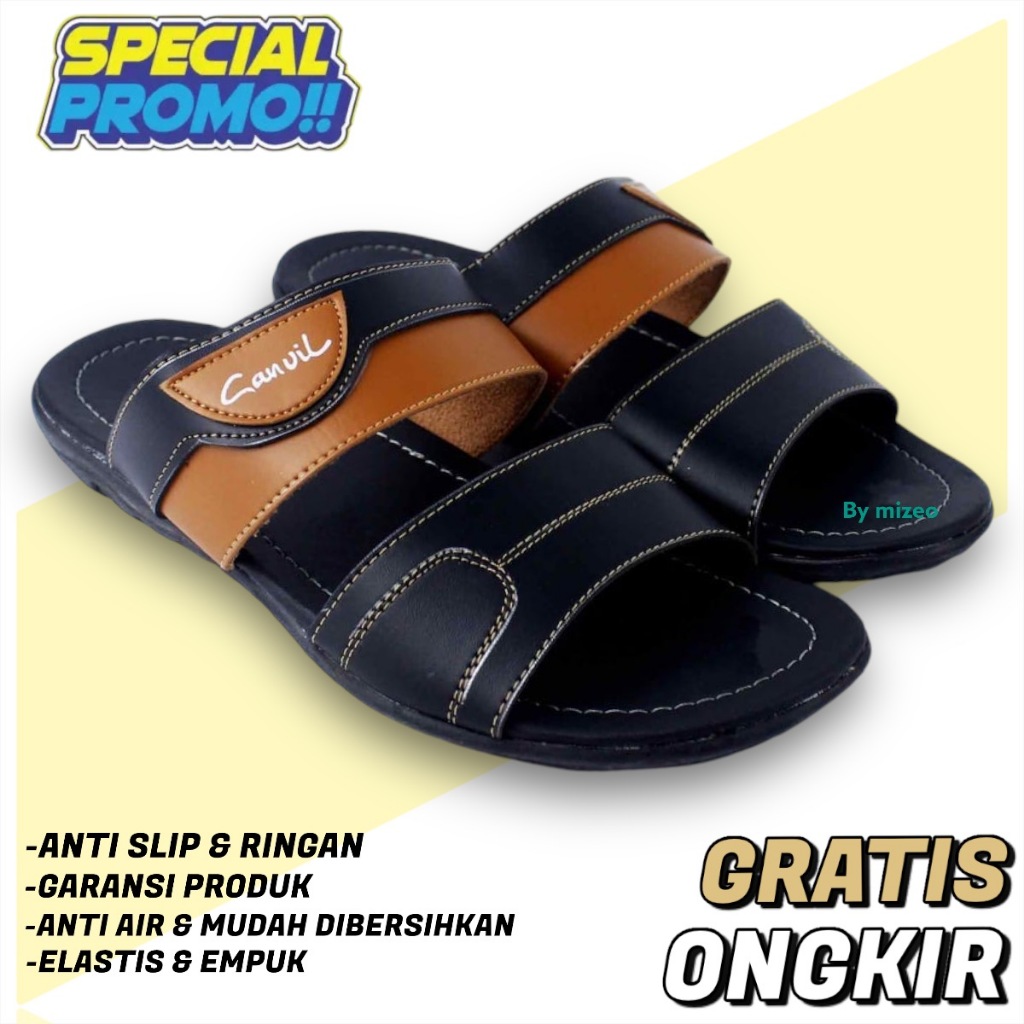 Sandal Kulit Pria Jepit Slop Casual Sendal Santai Slip On Model Terbaru & Trendy Termurah - Free Box