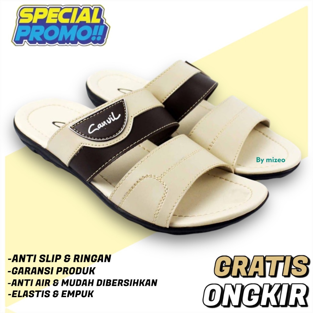 Sandal Kulit Pria Jepit Slop Casual Sendal Santai Slip On Model Terbaru & Trendy Termurah – Free Box