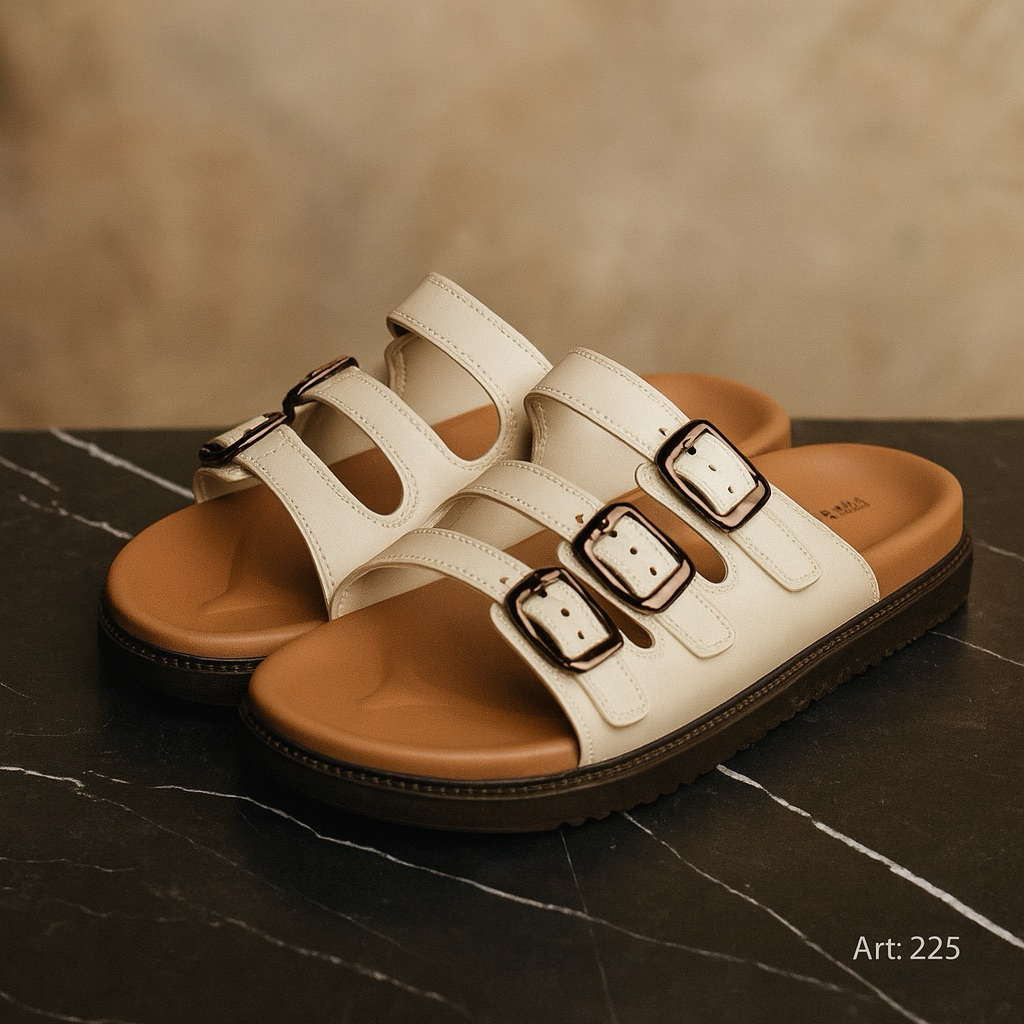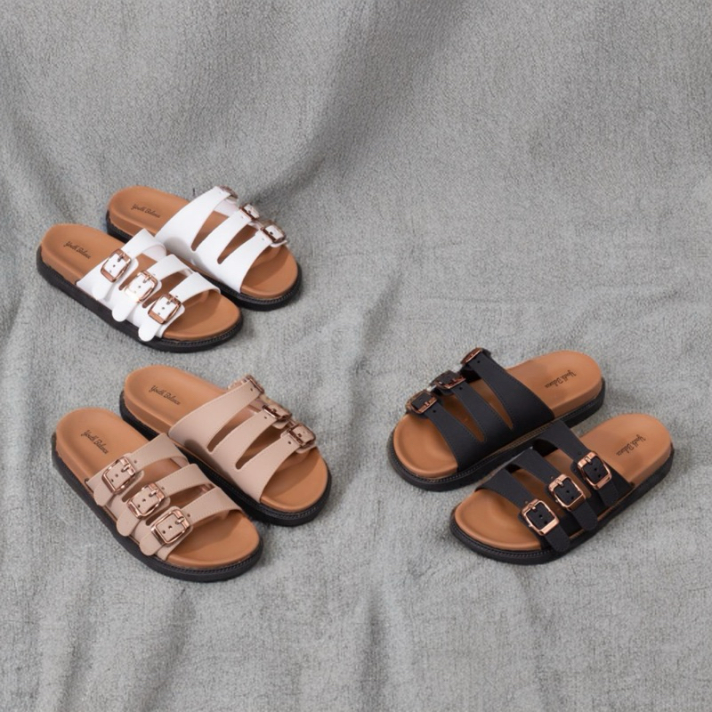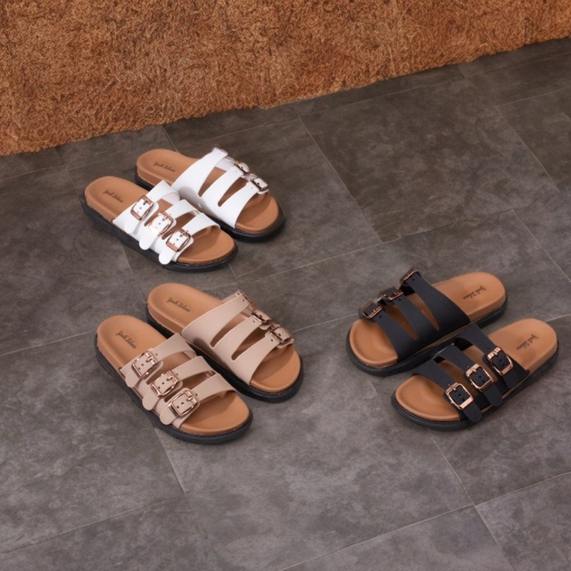 Sandal wanita tali terbaru POU ringan empuk nyaman kokoh lentur sandal wanita slop