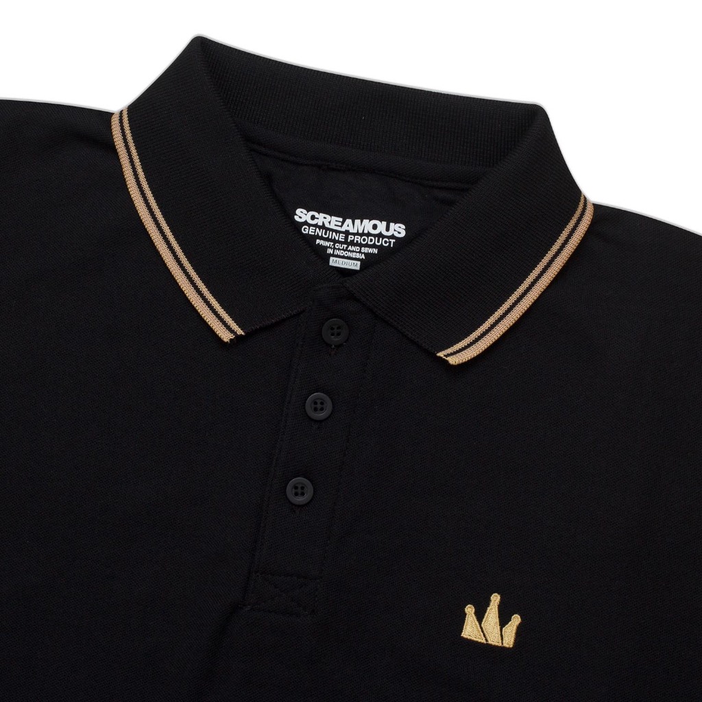 Beranda » Produk » Screamous Polo Shirt CROWN LINE GOLD BLACK