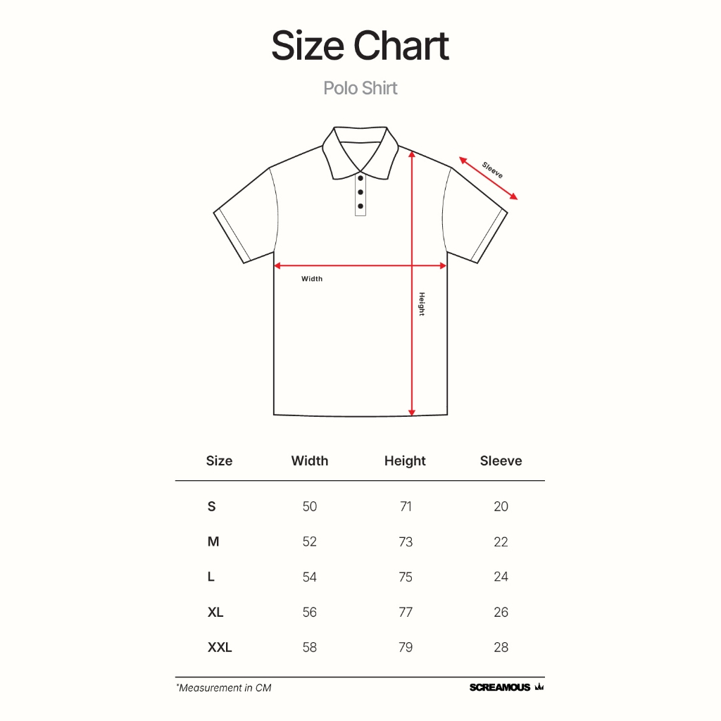 *Kemungkinan akan ada selisih 1-2 cm antara size chart dengan barang yang diterima. Ini biasanya dikarenakan proses pengembangan produksi.