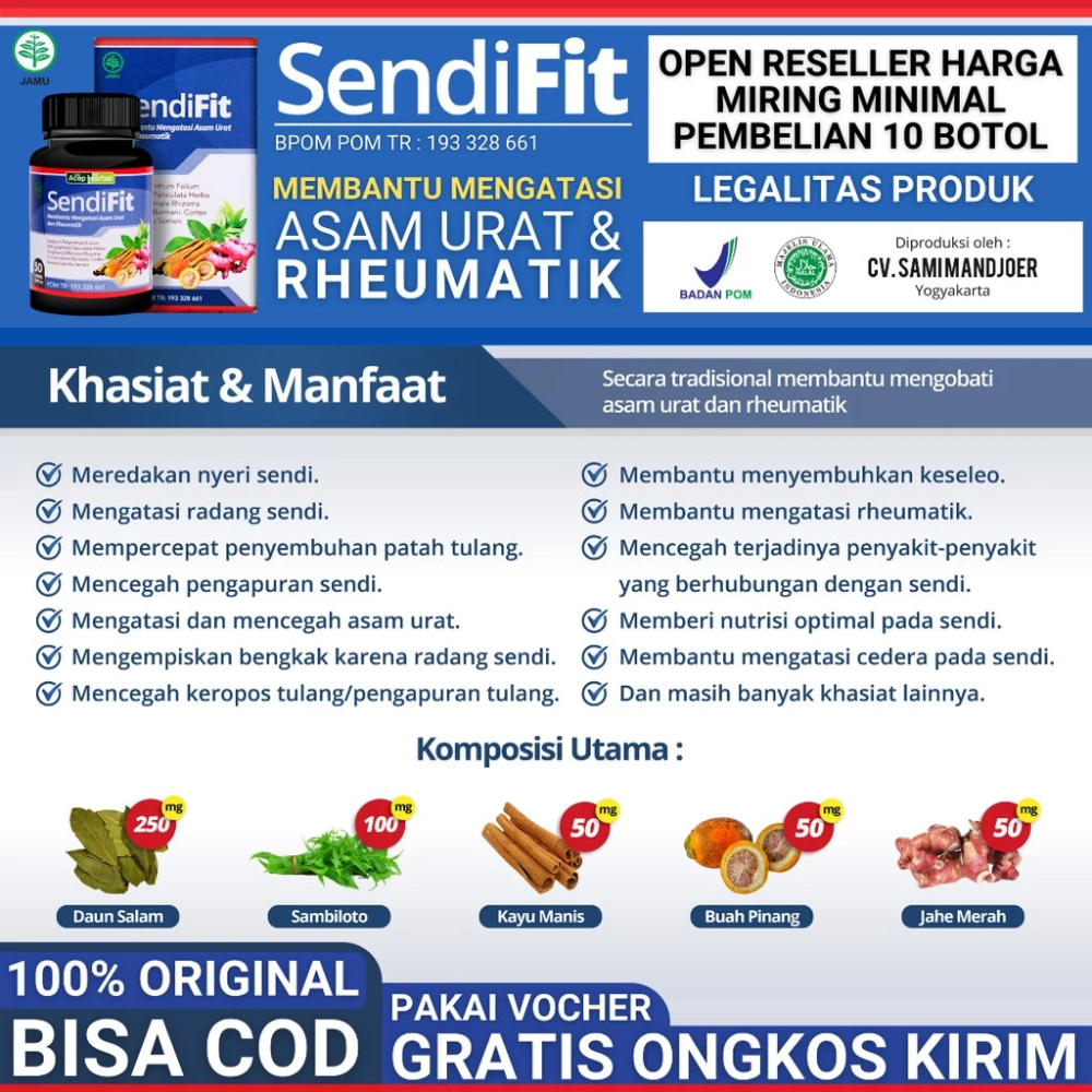 Sendifit Original Membantu Meredakan Nyeri Sendi Obat Herbal Sakit Lutut Asam Urat Rematik Syaraf Saraf Kejepit Sakit Pinggang Punggung Kebas Kesemutan Kaki Patah Tulang Tumit Pengapuran Sendi Tulang Gratis Dus Paking