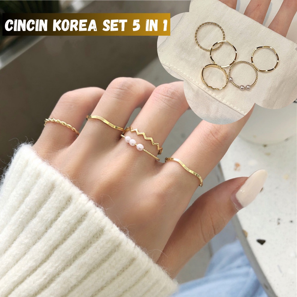 Set 5 pcs Cincin Titanium Wanita Fashion GROSIR