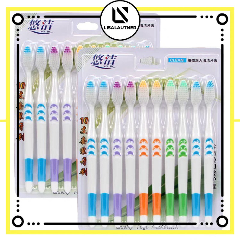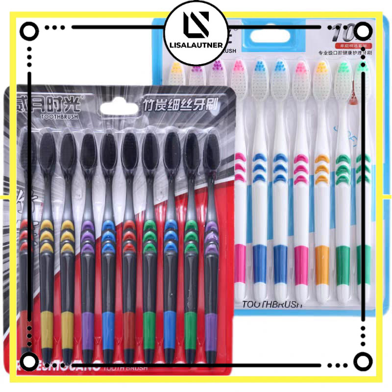 Sikat Gigi Dewasa 1 SET 10 PCS Tavel Toothbrush Double Care Sensitive