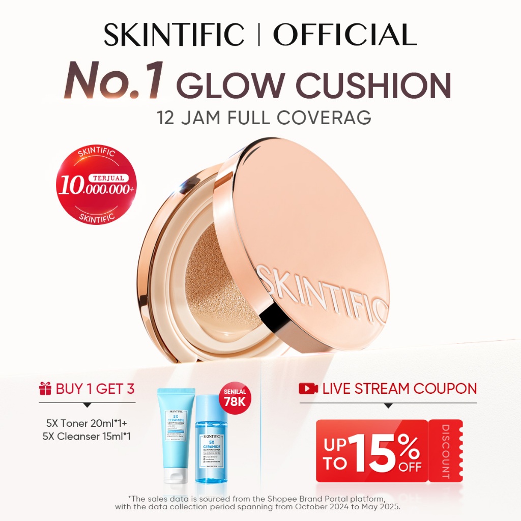 SKINTIFIC – Cover All Perfect Cushion| High Coverage Concealer Non-Comedogenic Primer Skin Tint Foundation Make Up BB Cream Kosmetik Refill UV Sunscreen Bedak Padat Kosmetik Wajah Cusion Compact Powder Conceler with Centella Asiatica Ceramide oil control