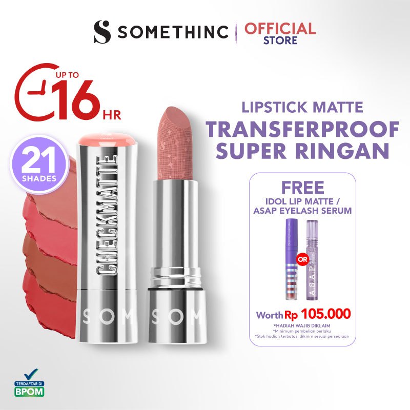SOMETHINC Checkmatte Transferproof Lipstick – Lipstick Batang Transferproof, Nyaman Dan Tahan Digunakan Hingga 16 Jam | Mampu Menyamarkan Garis Di Bibir, Terasa Ringan, Dan Tidak Lengket, serta Smudgeproof