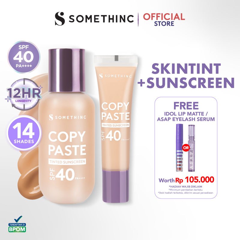 SOMETHINC COPY PASTE Tinted Sunscreen SPF40 PA++++ dapat digunakan u/ semua jenis kulit dari umur 11 tahun.