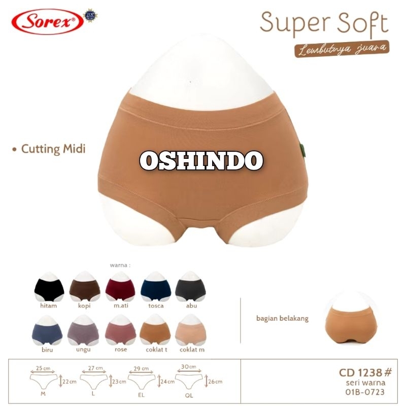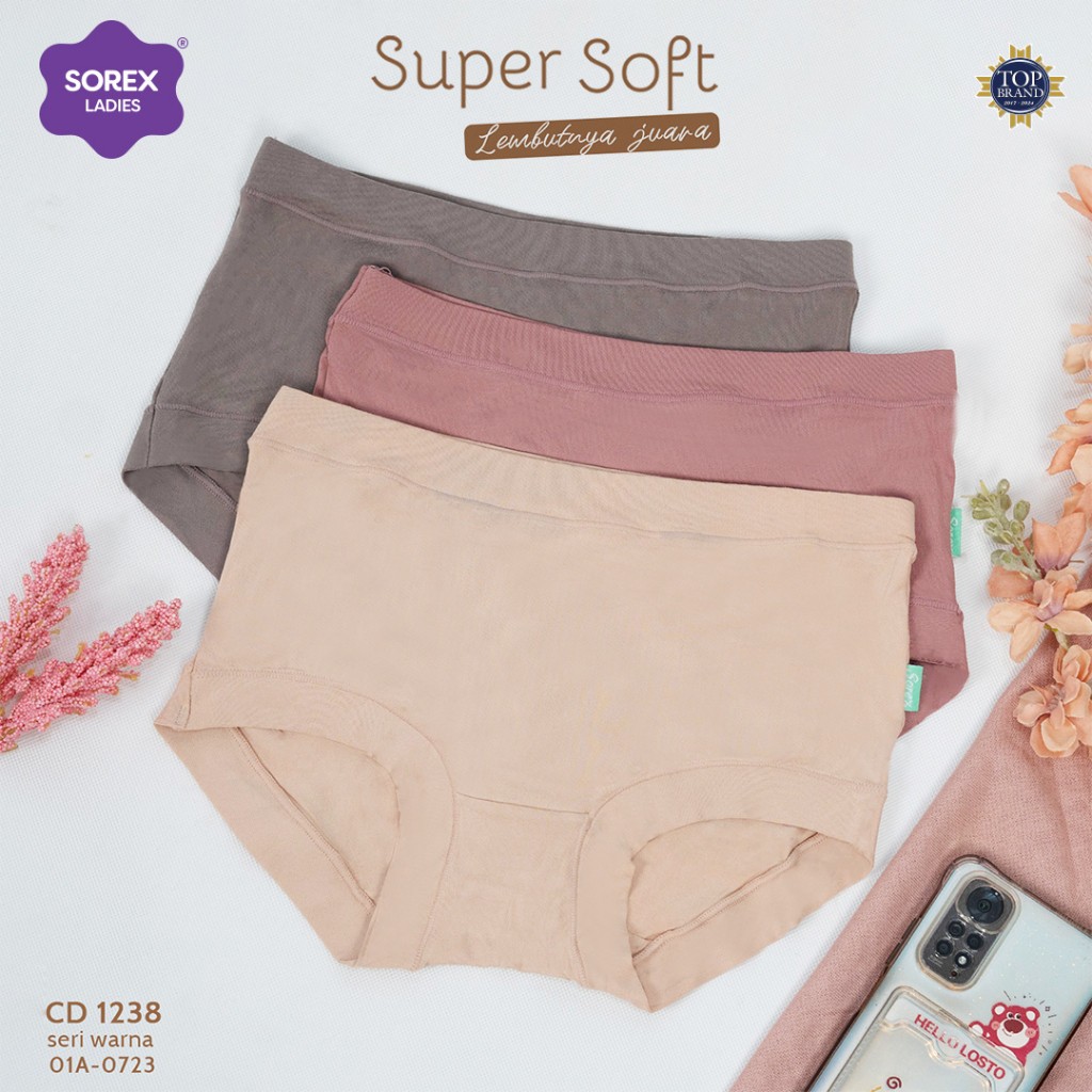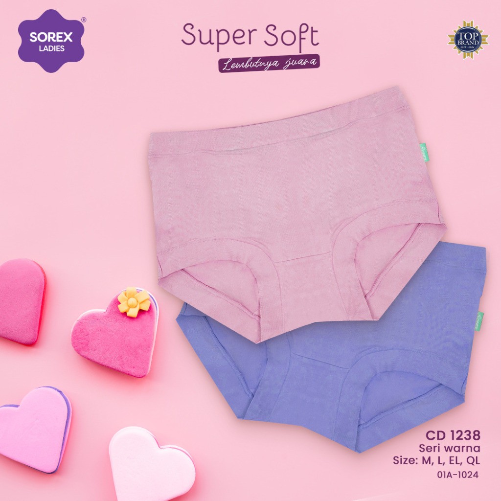 Celana dalam wanita merek Sorex edisi Super Soft (super halus) 1238 terbuat dari bahan sangat halus dan berkualitas (supeoft, harga dijamin murah)