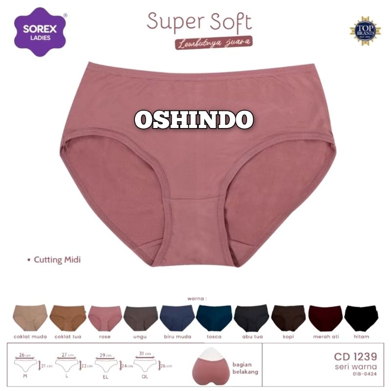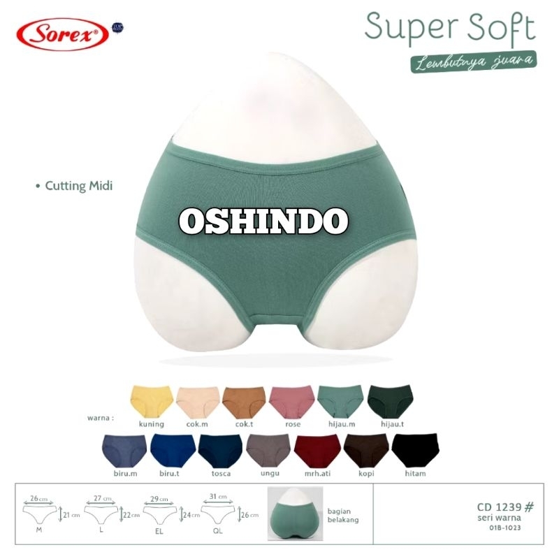 Celana dalam wanita merek Sorex edisi Super Soft (super halus) 1239 terbuat dari bahan SUPER SOFT super lembut dan berkualitas (super soft).