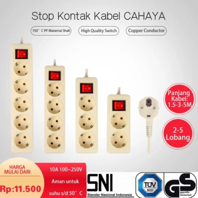 STOP KONTAK + KABEL 2 LUBANG 1.5/3/5 METER SNI
