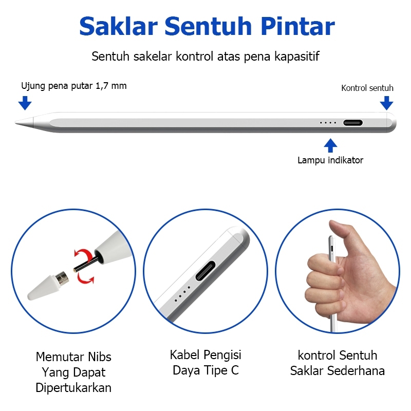 Beranda » Produk » Stylus Pen for iPad Andorid Tablet Samsung Huawei IOS /Xiaomi Smart Pencil Stylus Magnetic Pen