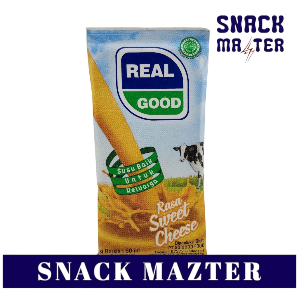Susu Real Good adalah susu berkualitas yang rasanya lezat dan harganya terjangkau. Mengandung 15 vitamin dan 10 mineral yang sangat dibutuhkan oleh tubuh, susu Real Good tersedia dalam banyak pilihan rasa dalam kemasan yang praktis. Dikemas dengan kemasan tetrapack. Ber BPOM dan Halal MUI