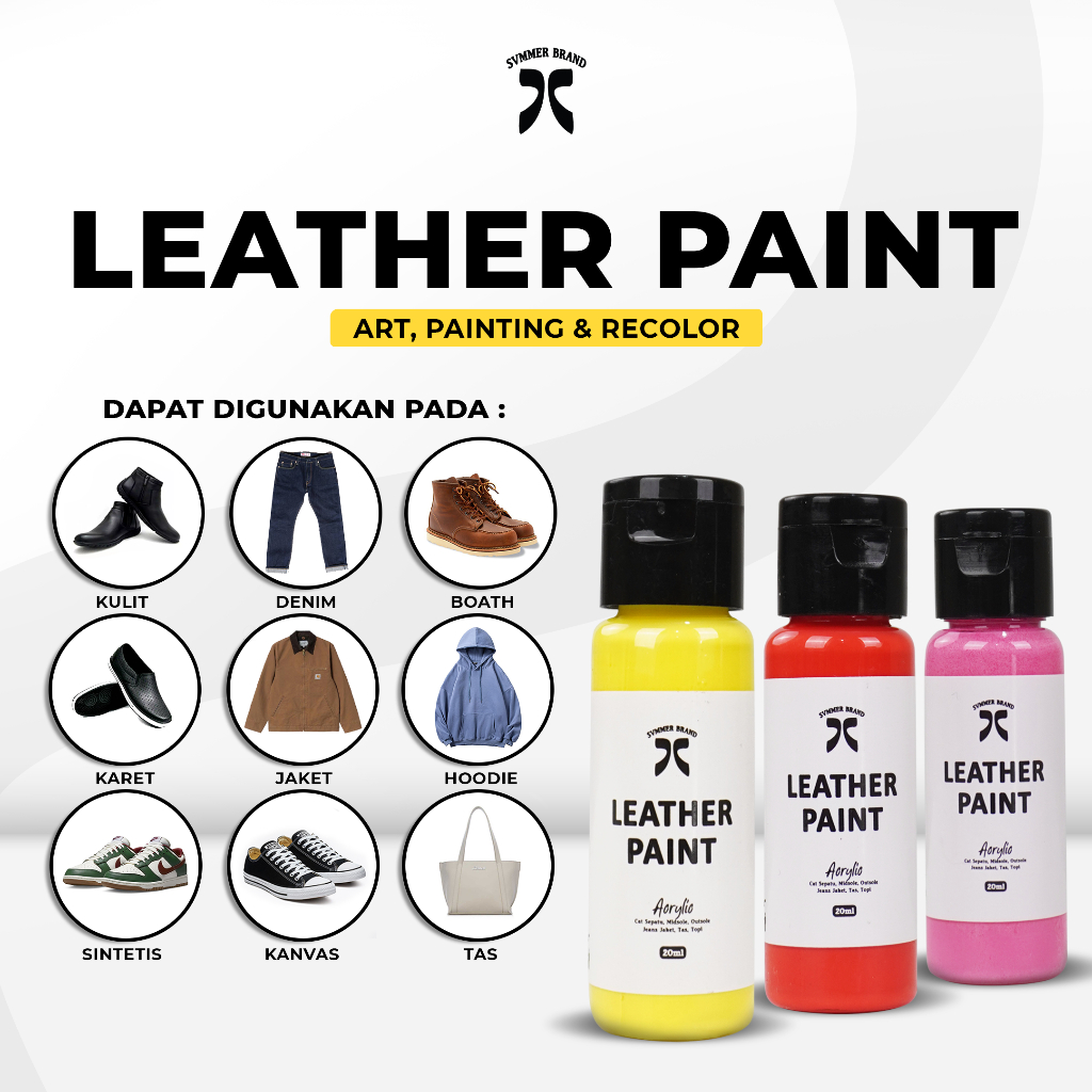 Dapat diaplikasikan untuk repaint atau recolor sepatu tas, dompet, dan media lainnya pada bahan Kulit, Sintetis, Rubber, PVC, Jeans, dan Boost.