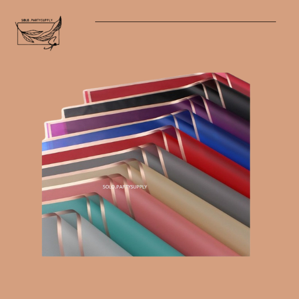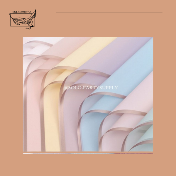 (SW) TERLARIS TRANSPARENT GOLD LINE FLOWER WRAPPING CELLOPHANE KERTAS BUKET BUNGA HAND BOUQUET PEMBUNGKUS KADO