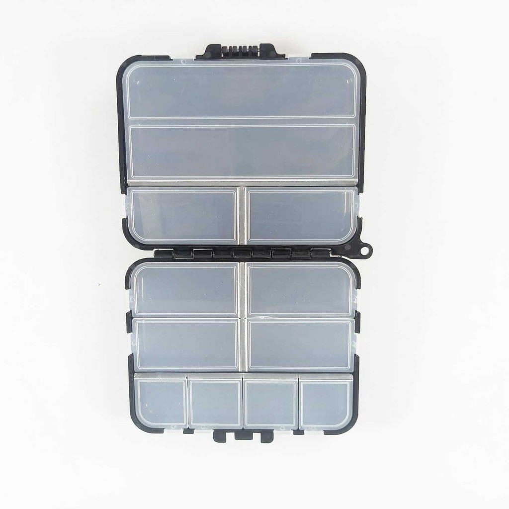 Tersedia 12 kompartemen untuk menyimpan kail pancing atau umpan pancing. Aman dengan pengunci di setiap kompartemennya dan pengunci di bagian luarnya. Terbuat dari material plastik yang tahan air, sehingga aksesori memancing akan tetap aman di dalamnya.