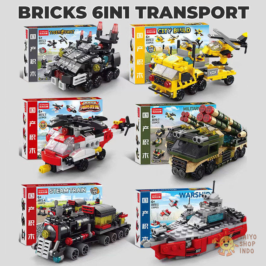 TAIYO Building Block 6in1 Transport 3D Bricks Vehicle Kendaraan Transportasi Nano Blok Puzzle Mainan