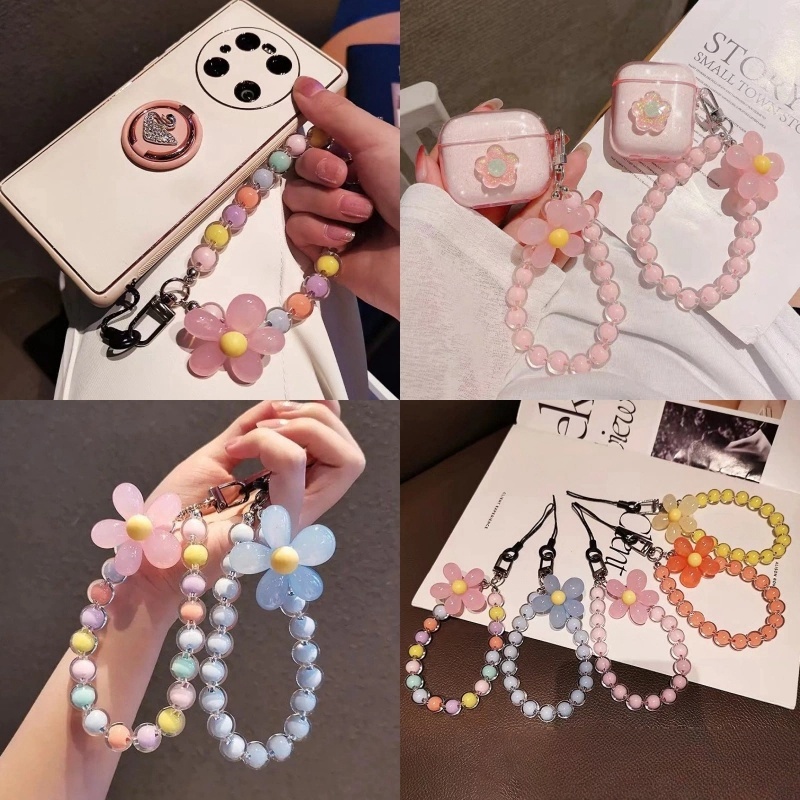 Tali Lanyard Hp Gantungan Hape PhoneStrap Handphone Manik Bunga Lucu Unik Cantik-Ver & Telepon Lanyard Portabel Handmade Manik-Manik Kristal Lanyard Pergelangan Tangan Kabel Warna-Warni Manik-Manik Bulat