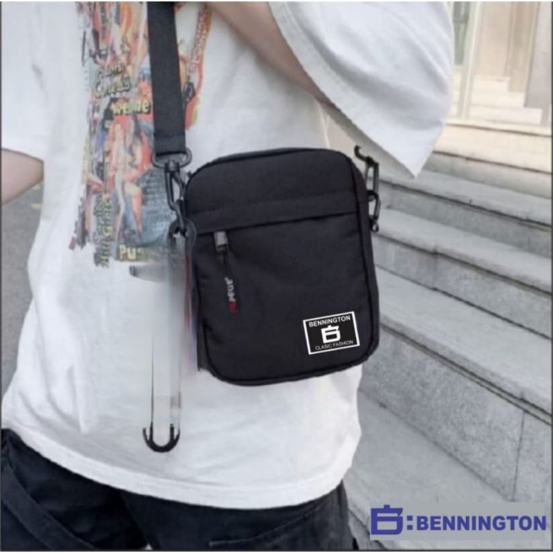 Tas DISTRO selempang slingbag pria Anti air New Bennington korean kekinian FREE STIKER &GANTUNGAN KUNCI