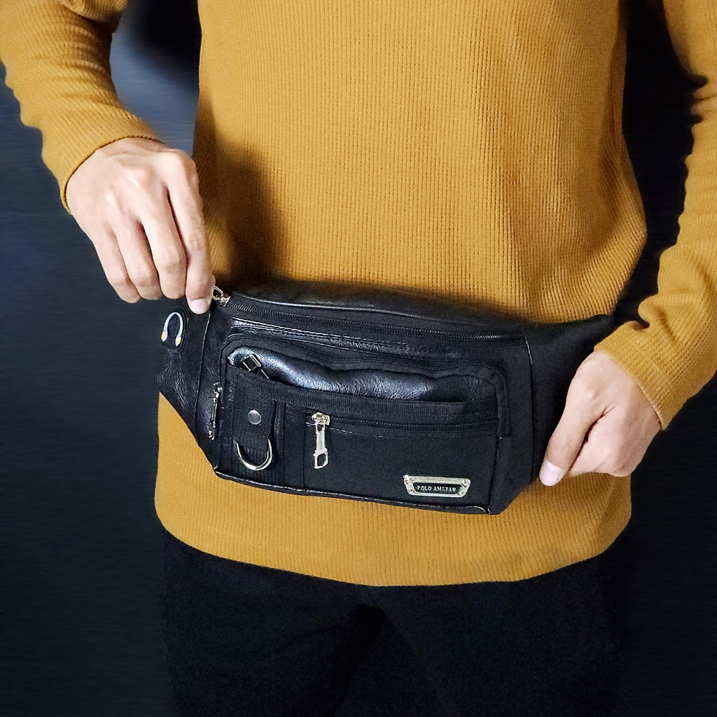 Tas Selempang Pria POLO AMSTAR Compact Waistbag Slingbag Kulit Tas Pinggang Cowok Casual Multifungsi