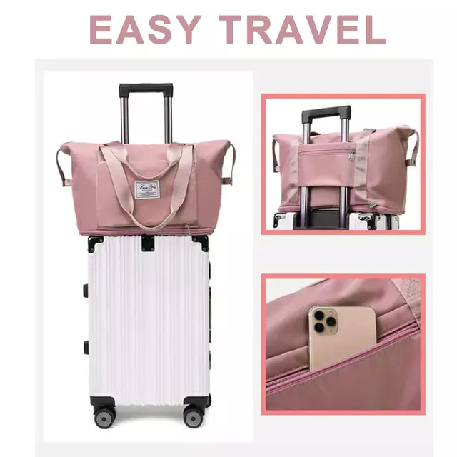 Selain itu tas ini juga dapat dikaitakn ke gagang koper, sehingga tidak perlu di tenteng