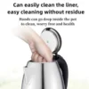 Material bahan dengan lapisan stainless anti karat yang sangat tahan lama dan aman untuk air mendidih. Ketel hemat energi ini memiliki desain unik dengan penuangan sempurna sehingga sangat mudah digunakan, Anda dapat membuat secangkir minuman favorit Anda kapan pun Anda mau Kapasitas 2L yang cukup besar untuk Anda gunakan.