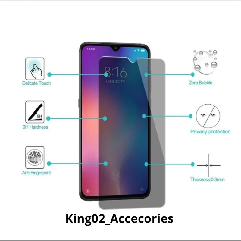 Tempered Glass adalah pelindung layar kaca tempered premium yang memiliki lapisan oleophobic untuk mencegah kontaminan. Desain anti-mengintip meningkatkan keamanan dengan mengaburkan apa yang terlihat di layar Anda dari sudut sisi mana pun. Memiliki fungsi shatter-proof yang membuat aman layar ponsel saat tempered glass pecah. Perlindungan sampai ke bagian Edge nya yang mampu melindungi dari retak, benturan, debu, ataupun goresan. Terbuat dari bahan kaca Raw Japan Asahi Glass dan menampilkan perlindungan permukaan 9H hardness yang tahan lama. Anti-sidik jari, anti-minyak, anti-rusak secara efisien terhadap semua jenis goresan benda keras.