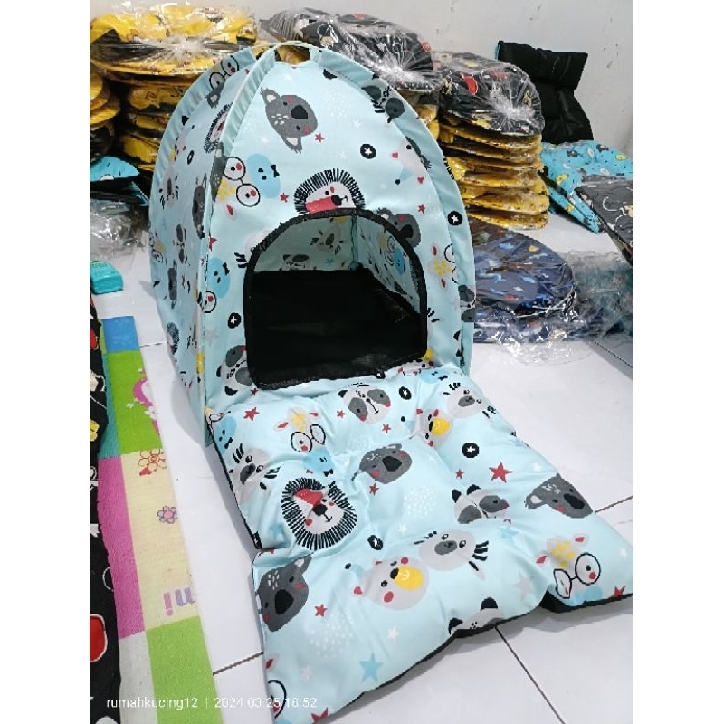 Tenda kucing BESAR MOTIF BUKAN POLOS free kasurnya ukuran 45×45