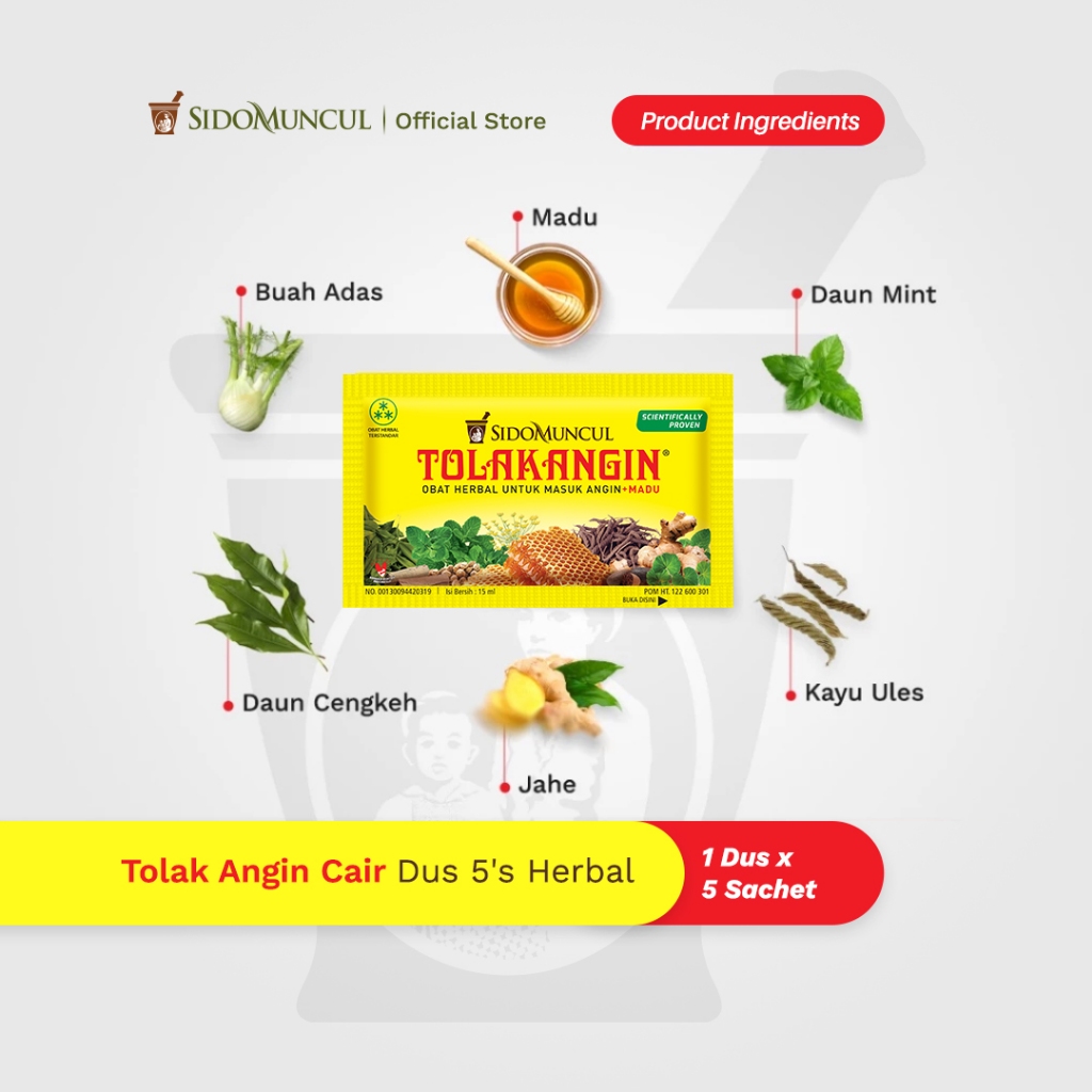 Tolak Angin Cair Herbal 1 Box Isi 5 Sachet – Masuk Angin Mual Flu Demam