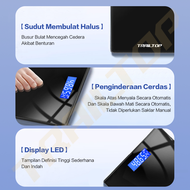 TrailTop Timbangan Badan Digital Pengukuran Akurat Timbangan Layar LCD Berat Max 180kg