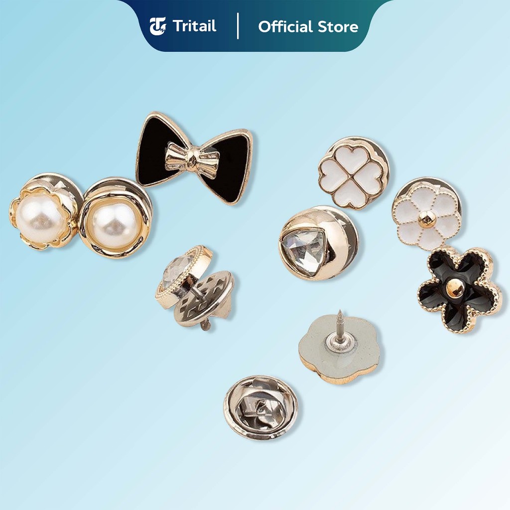 - Ada Beberapa kancing yang memiliki desain berlian imitasi yang indah, kreatif dan indah karena bentuk busur bunganya, mutiara dan berlian imitasi berkilau.