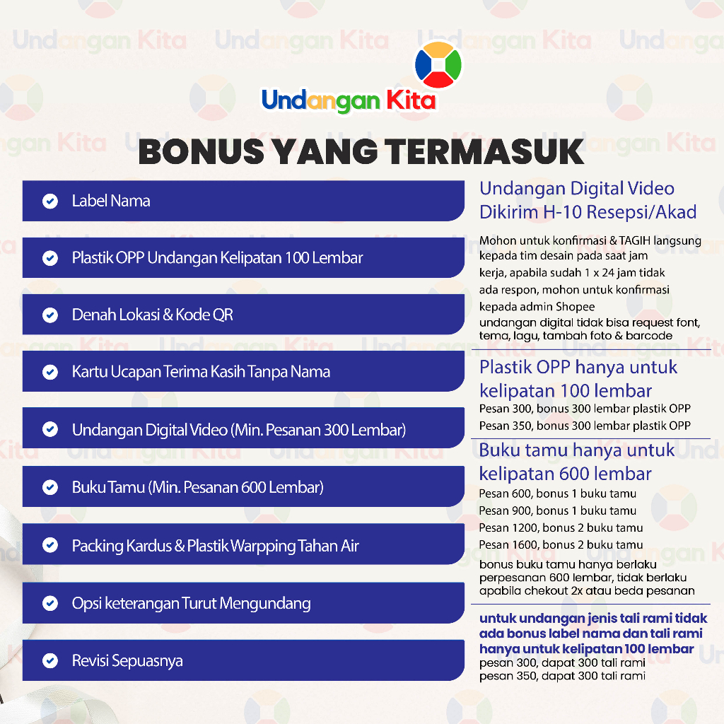** Undangan memiliki border putih di tepi kanan-kiri sebesar 0.3 cm. Jika ingin borderless, silakan chat admin.