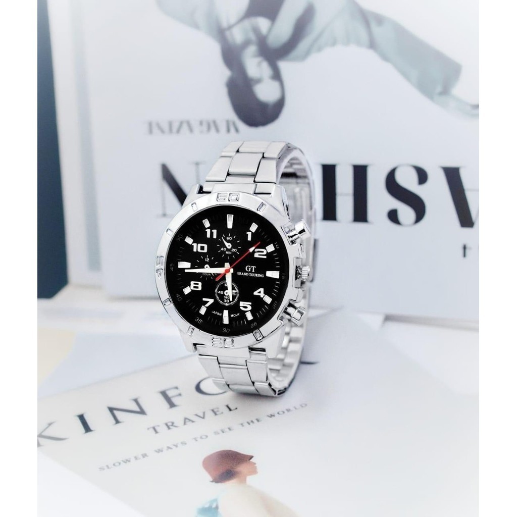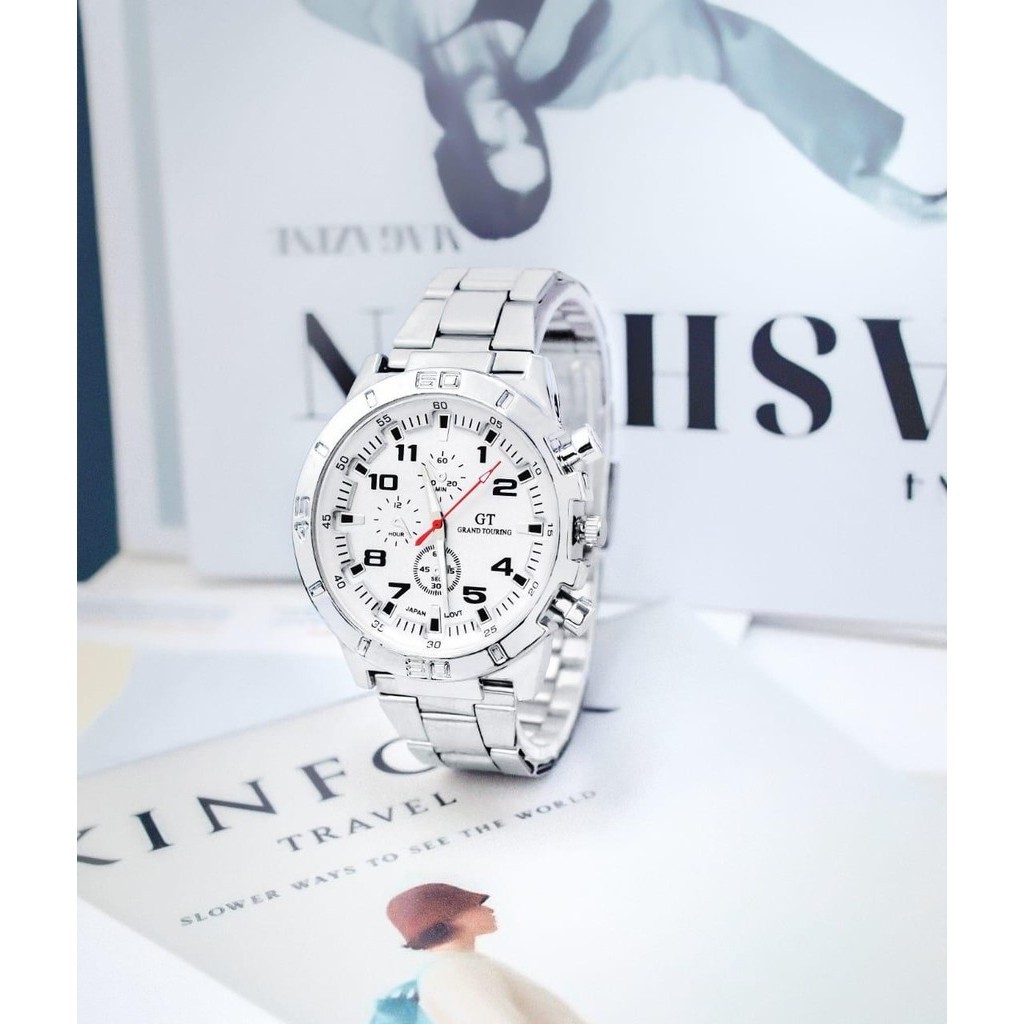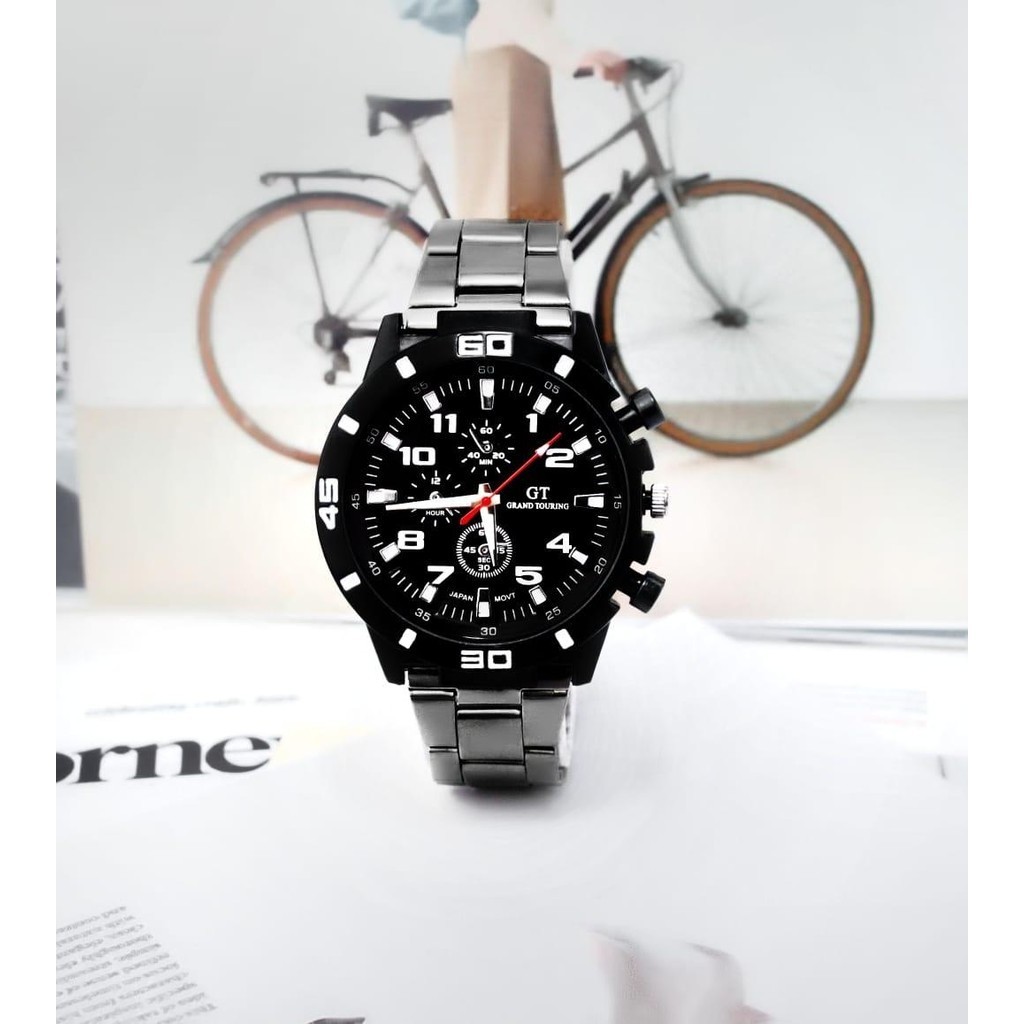 WBS Jam Tangan Pria GT Sport Chrono Grand Touring Rantai Stainlee Steel Korea Fashion Quartz Silikon Rubber Analog Watch RM191