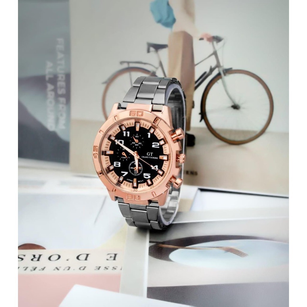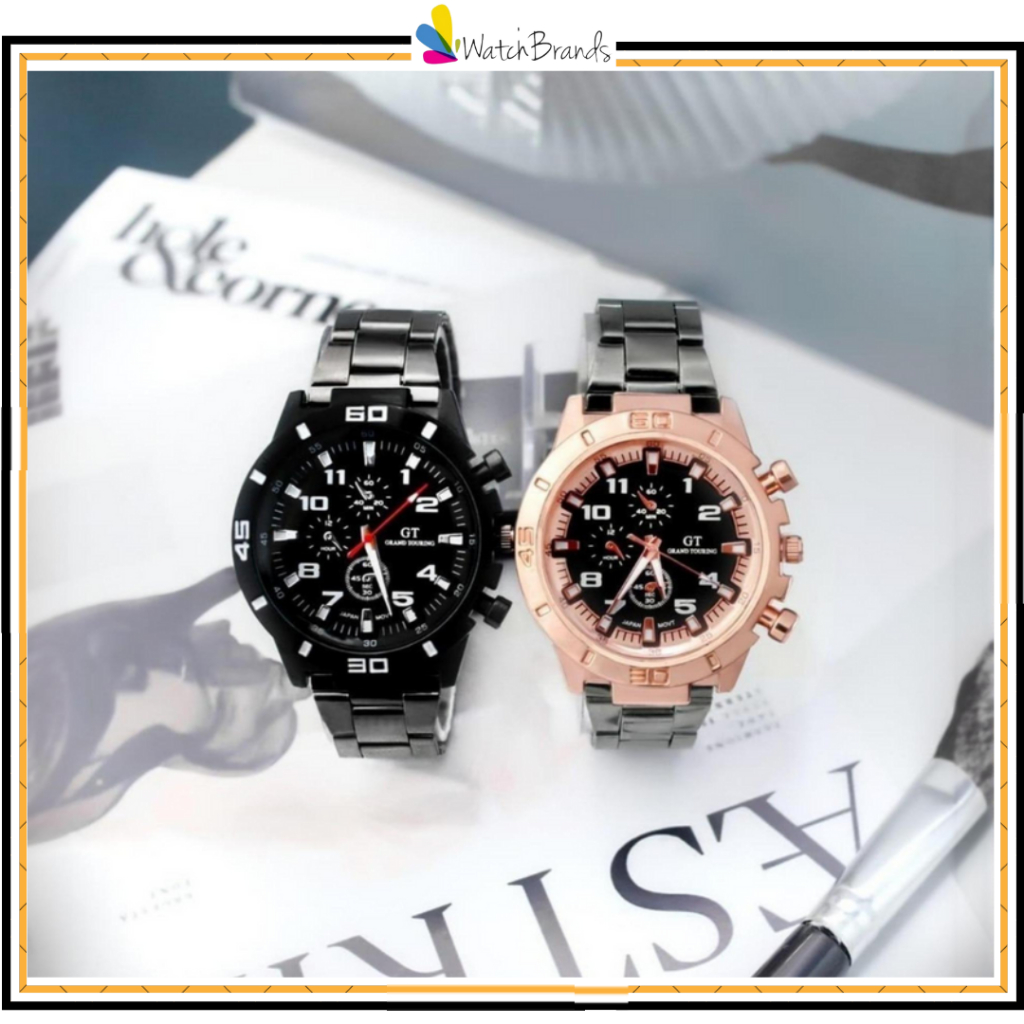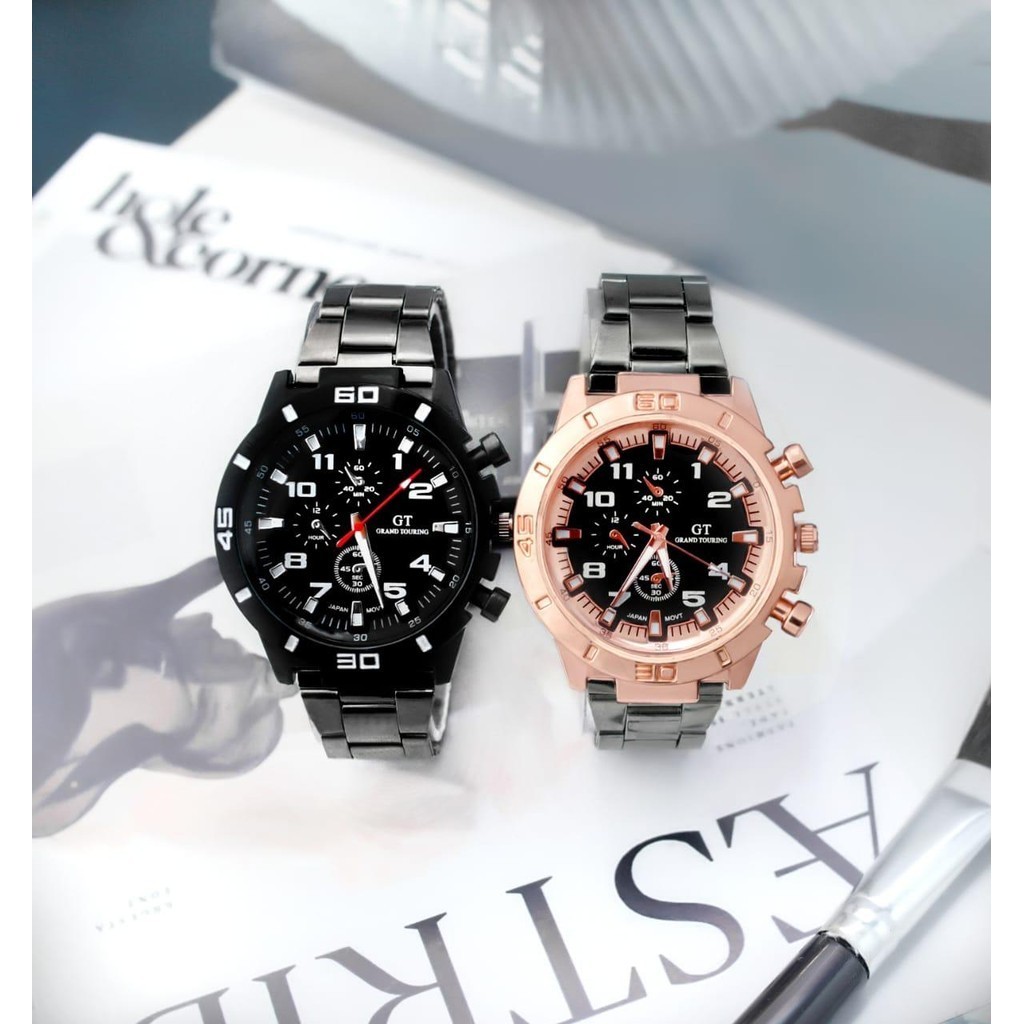 WBS Jam Tangan Pria GT Sport Chrono Grand Touring Rantai Stainlee Steel Korea Fashion Quartz Silikon Rubber Analog Watch RM191