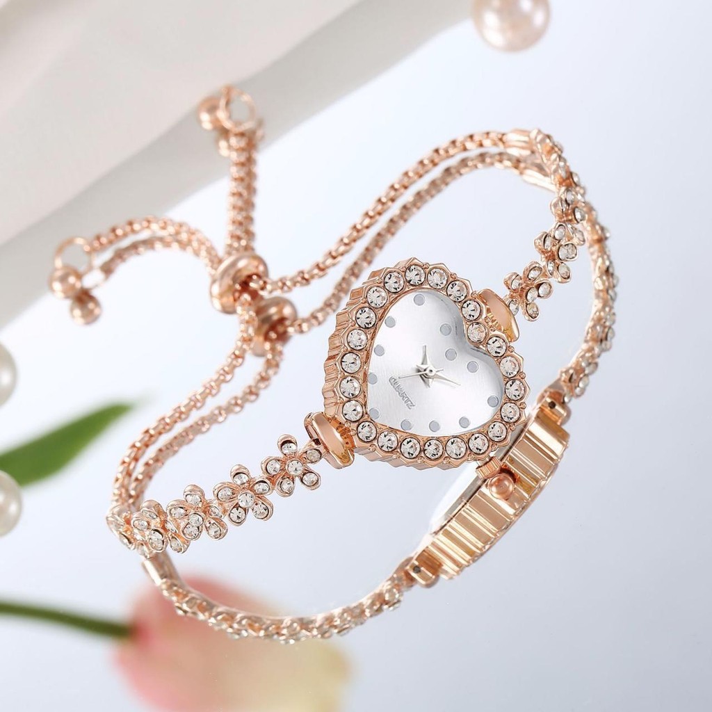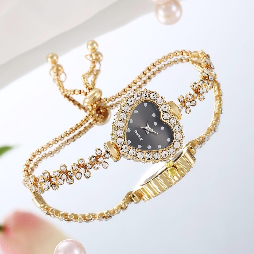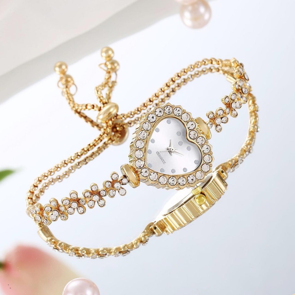 WBS Jam Tangan Serut Mewah Gelang Serut Wanita Analog Quartz Adjustable Anti Air Rantai Stainless Steel Diamond Fashion RM211