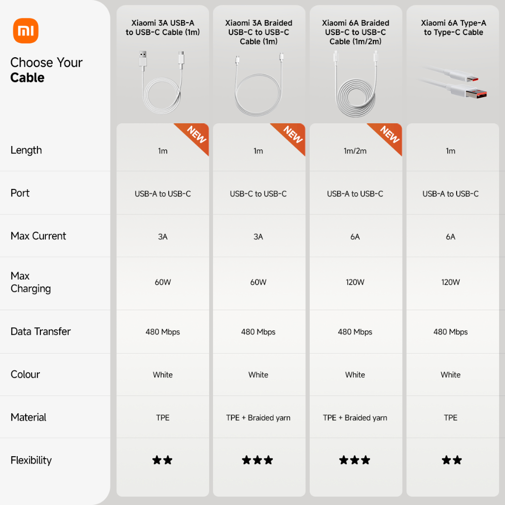 Xiaomi 3A USB-A to USB-C Cable (1m) | 3A speed | 10.000+ Bend Lifespan | 480Mbps High-Speed data transfer | Safe and durable [Official Store]