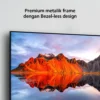 Desain: Ukuran 32", bingkai metalik ramping dengan desain tanpa bezel, warna hitam, dua kaki penyangga