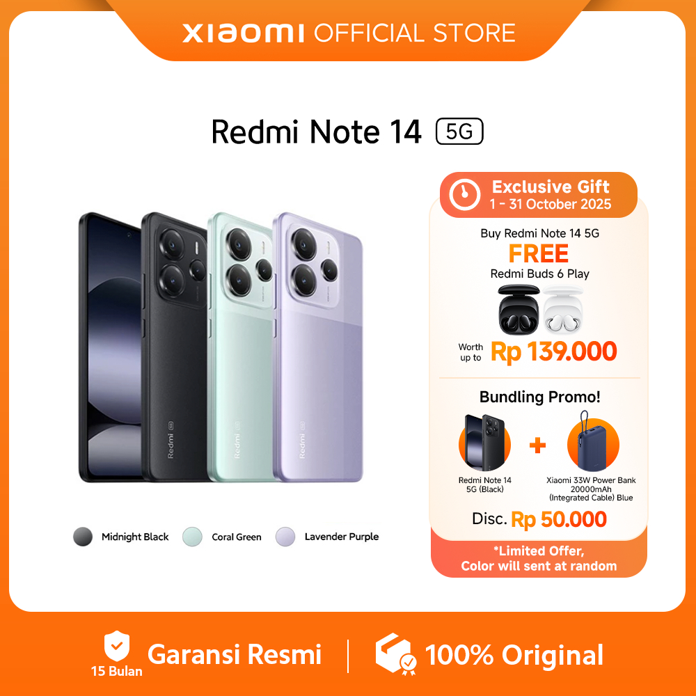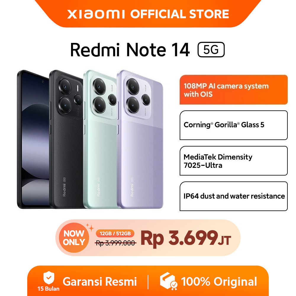 Rasakan pengalaman luar biasa dengan Redmi Note 14 5G, smartphone dengan sistem kamera AI 108MP yang memungkinkan Kamu menangkap gambar jernih dan detail luar biasa, bahkan saat diperbesar. Dilengkapi dengan OIS & EIS, bidikan stabil tanpa goyangan. Dengan 45W Turbo Charging dan baterai 5110mAh, nikmati pengisian daya cepat dan penggunaan lebih lama, bahkan dengan pengisian sehat yang mempertahankan kapasitas lebih dari 80% hingga 4 tahun!