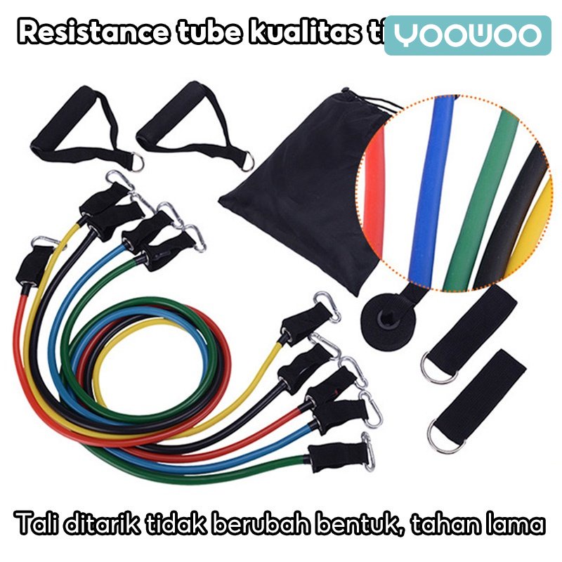 YooWoo Resistand band set 11pcs /11in1 Set tali fitness/Set tali gym/Band stretching