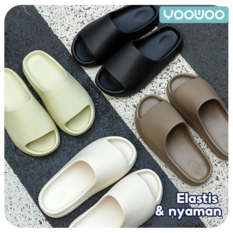 YooWoo Sendal Slop Sendal Selop Pria Sendal Karet Empuk Anti Slip Ukuran 36-45 Cream/Hitam/Coklat/Hijau sandal