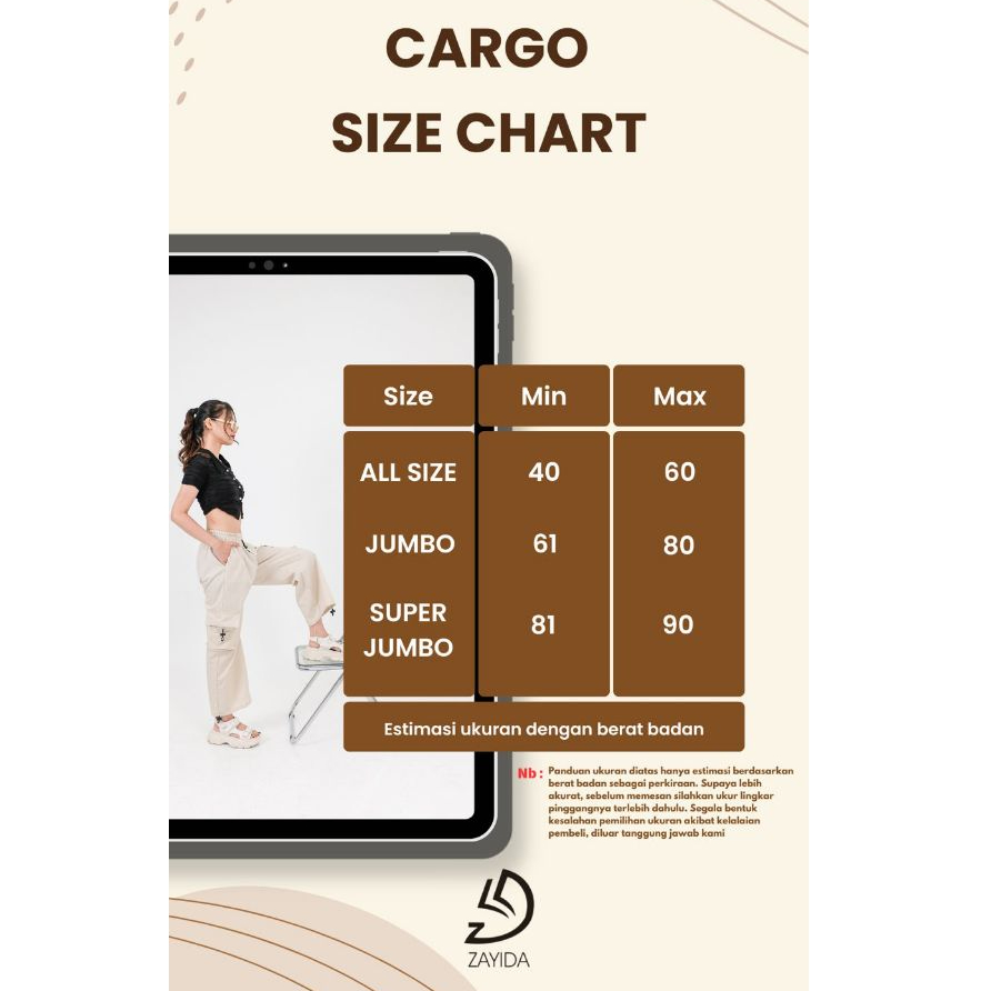 Beranda » Produk » ZAYIDA – Kiya Cargo Pants Wanita Highwaist Loose Korean Style Jumbo – Celana Kargo Wanita Terbaru