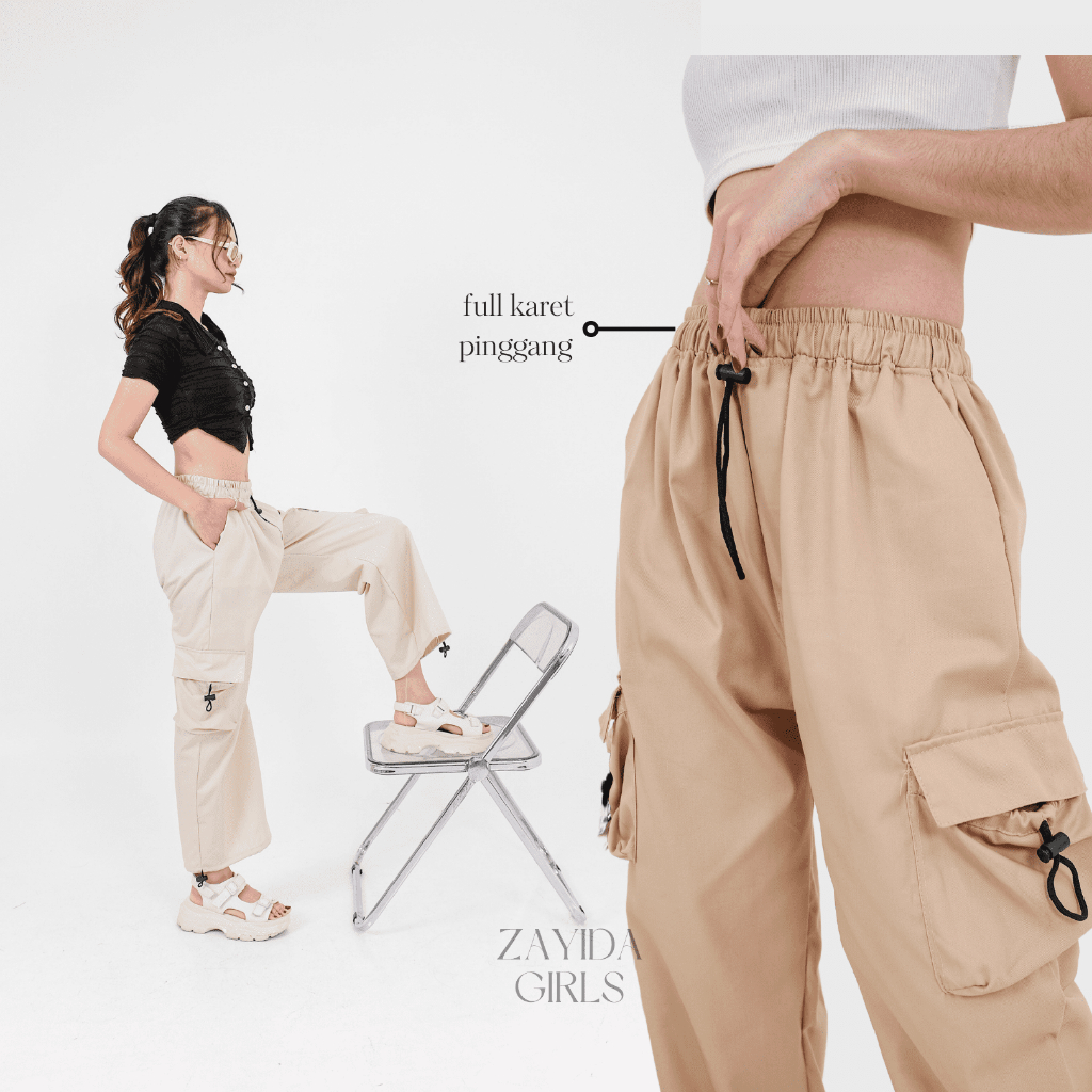 ZAYIDA – Kiya Cargo Pants Wanita Highwaist Loose Korean Style Jumbo – Celana Kargo Wanita Terbaru