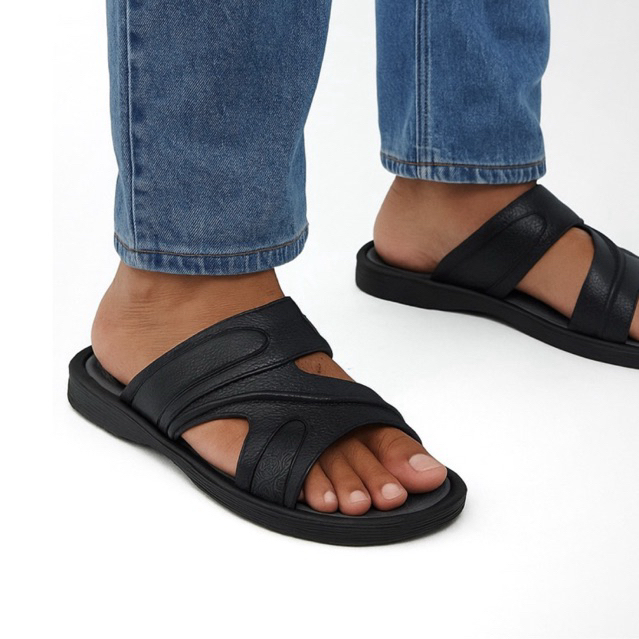 Sandal karet pria nyaman dan ringan dengan desain klasik. Cocok digunakan untuk aktivitas sehari-hari di rumah, jalan santai, ke cafe atau ke mall.
